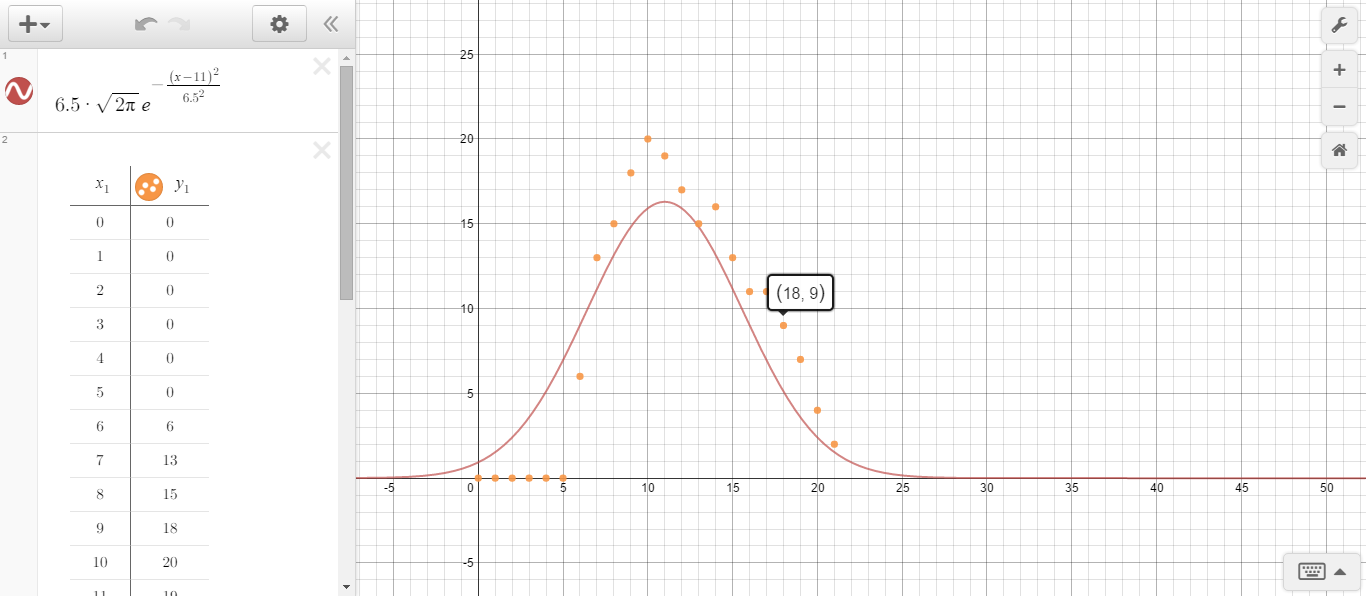 (You will find that this is quite a small data set for any kind of accurate statistical curve matching. The resulting curve will appear off due to the few datapoints. You are welcome to try a larger data set. But I digress…)